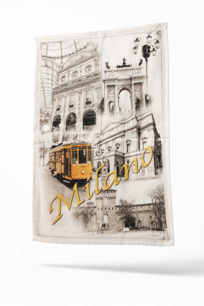 Asciugapiatti Vecchia Milano soggetti vari, 100 %cotone made in Italy