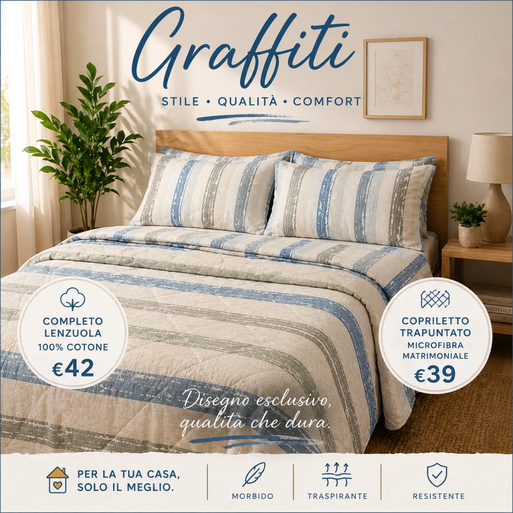 Copriletto trapuntato matrimoniale microfibra Graffiti.