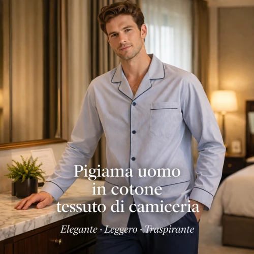 Pigiama uomo in popeline di puro cotone Giacca con...