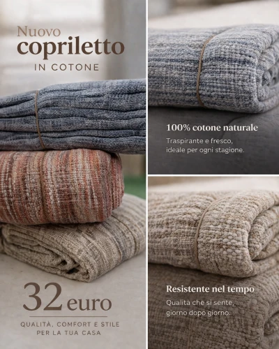 Copriletto matrimoniale in cotone Cm x Prodotto il...