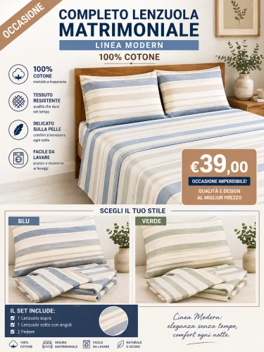 Completo lenzuola matrimoniale cotone Prodotto Made...