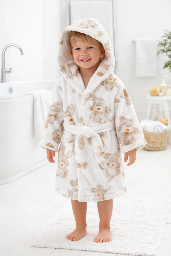 Morbido, avvolgente e pensato per i più piccoli, l’accappatoio Gabel in spugna è ideale dopo il bagnetto o per i momenti di relax. Realizzato in cotone di alta qualità, assicura massima assorbenza e comfort sulla pelle delicata dei bambini.