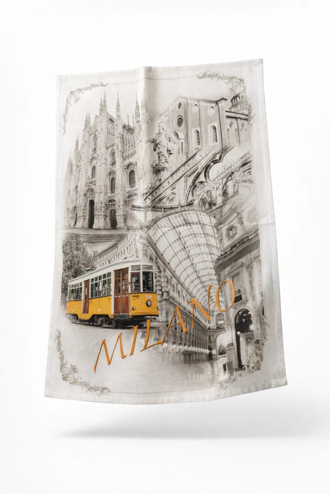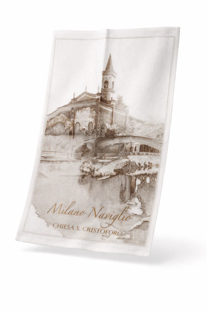 Asciugapiatti Vecchia Milano soggetti vari, 100 %cotone made in Italy