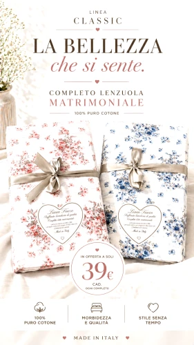 Completo lenzuola matrimoniale cotone made in Italy in...