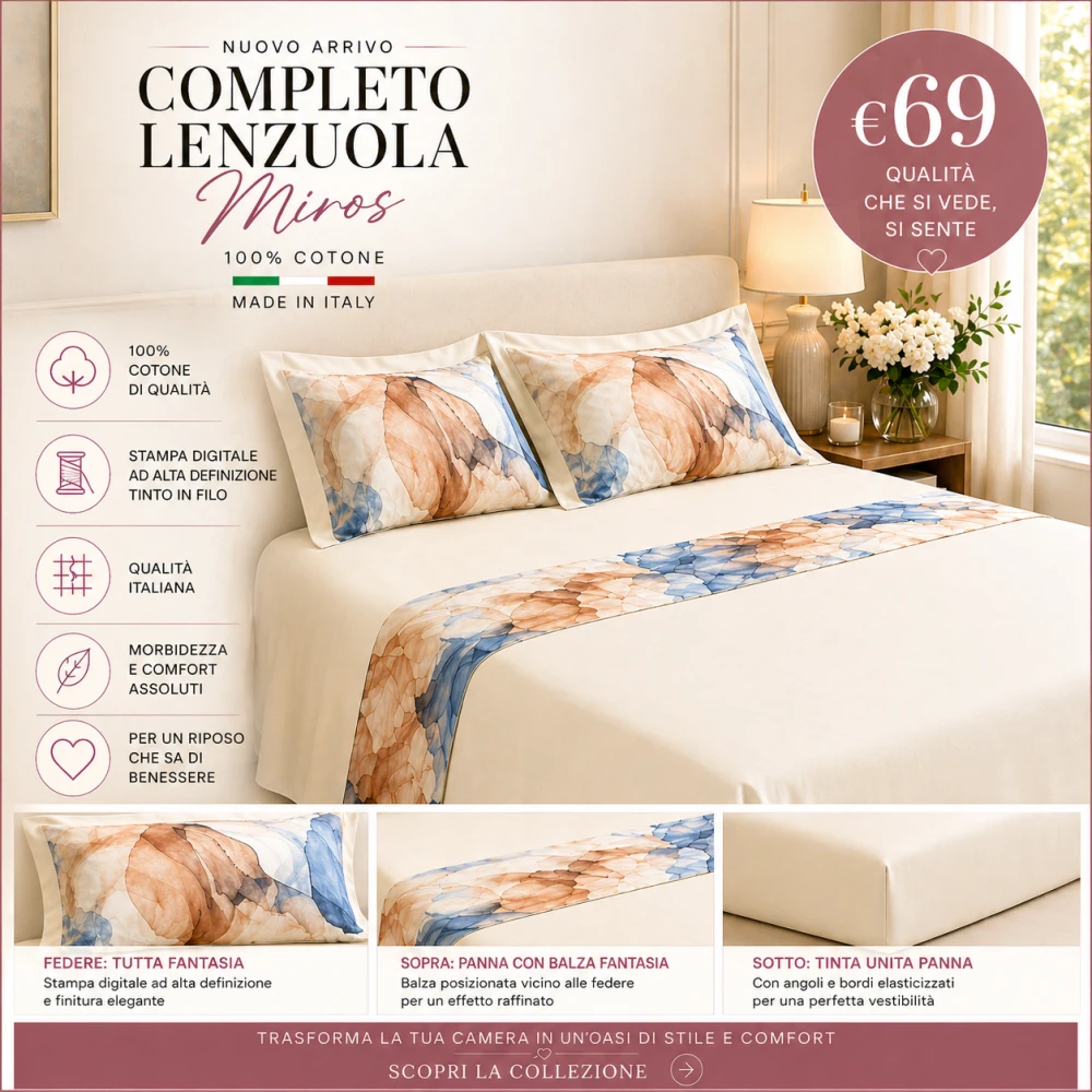 Completo Lenzuola in Puro Cotone Made in Italy Rinnova...