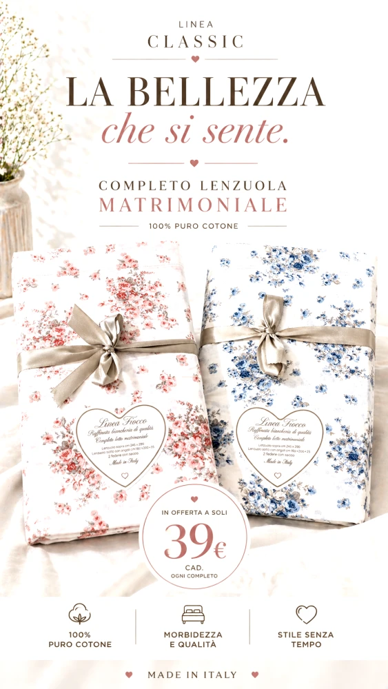Completo Lenzuola in Puro Cotone Made in Italy Rinnova...