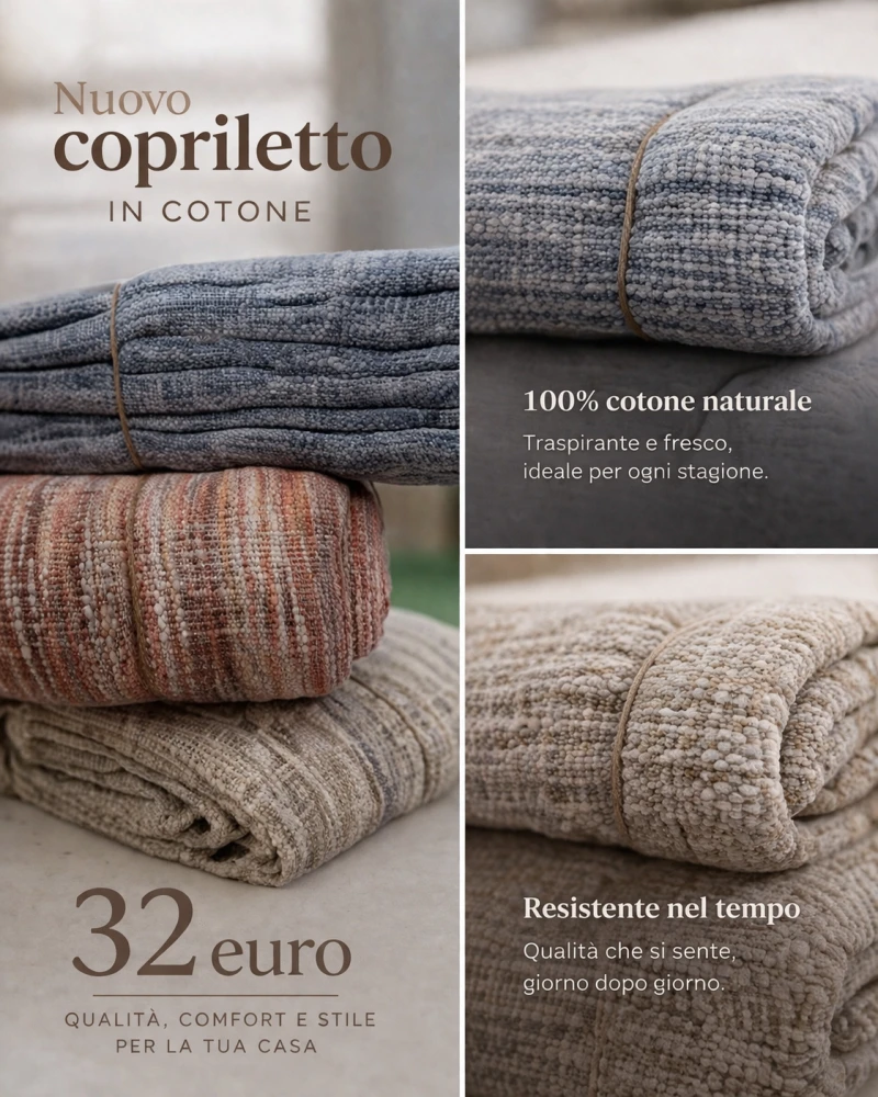Copriletto puro cotone grezzo.