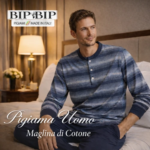 Pigiama Uomo BIP BIP in Maglina di Cotone Comfort e stile...