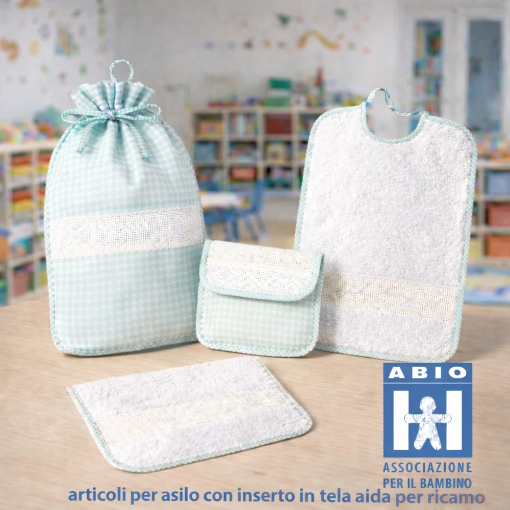 ARTICOLI PER ASILO CON INSERTO TELA AIDA DA RICAMARE